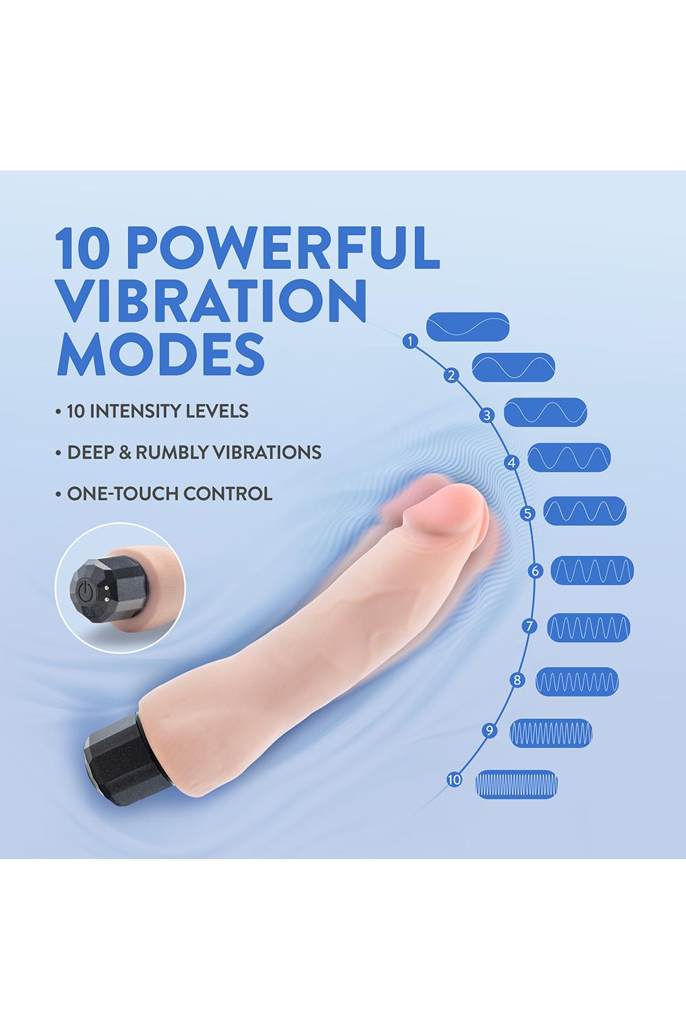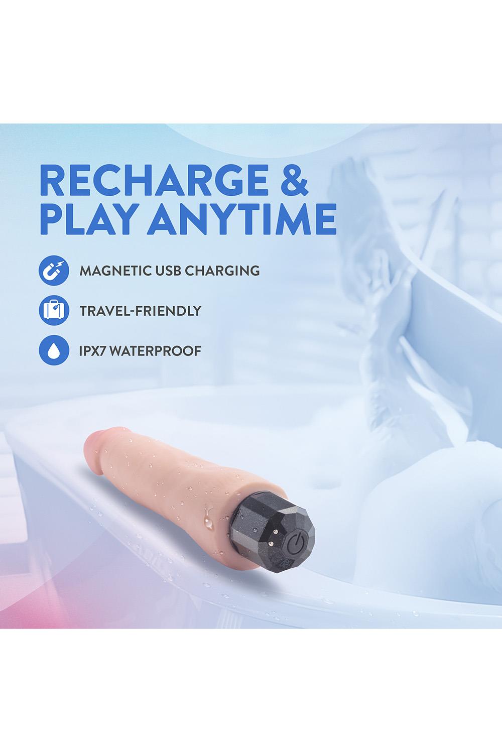 Get the party started with Au Naturel Vanilla Ice! This flirty 8.75” vibrating dildo is always ready for a wild time, combining playful energy with lifelike realism for a deeply satisfying experience. Crafted to contour to your body, the flexible shaft moves with you, ensuring pleasure in any position. Designed with a posable inner core that holds its shape, Vanilla Ice offers full control over angle and pressure. The soft outer layer and firm center create a realistic sensation that delivers with every use. Its sculpted form and satisfying girth provide a full-bodied feel, perfect for those who crave something more immersive. Explore 10 deep and rumbly vibration modes ranging from gentle pulses to steady intensity. With its 100% body-safe design, Vanilla Ice is fully waterproof and USB rechargeable for effortless pleasure. Whether you're exploring new sensations or adding a spark to your routine, let Vanilla Ice bring the power, the flexibility, and the fun to keep the party going.