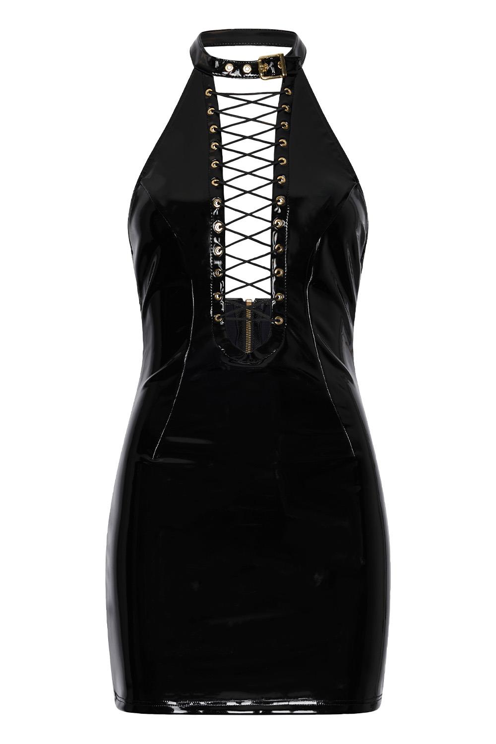 At the back, a low-cut design with a discreet zipper ensures every exit is as unforgettable as the entrance. An adjustable halter neck with gold-toned buckle adds both structure and a hint of decadent edge. From provocative moments in private to powerful statements on the scene, this dress doesn’t whisper. It declares.