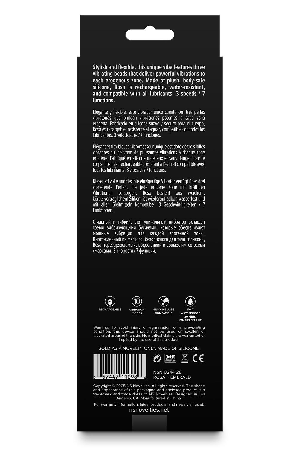 Stylish and flexible, this unique vibe features three vibrating beads that deliver powerful vibrations to each erogenous zone. Made of plush, body-safe silicone, Rosa is rechargeable, water-resistant, and compatible with all lubricants.