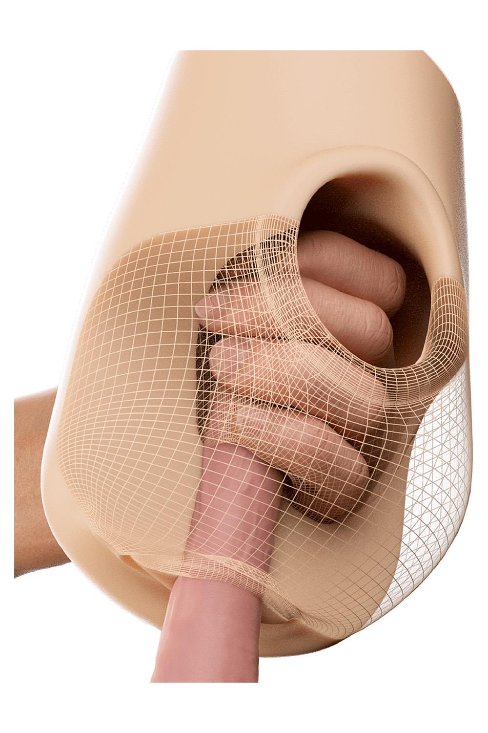 • INTRICATE PLEASURE TUNNEL The interior tunnel has been lined with pleasure nubs that were designed to massage every inch of your hard cock.