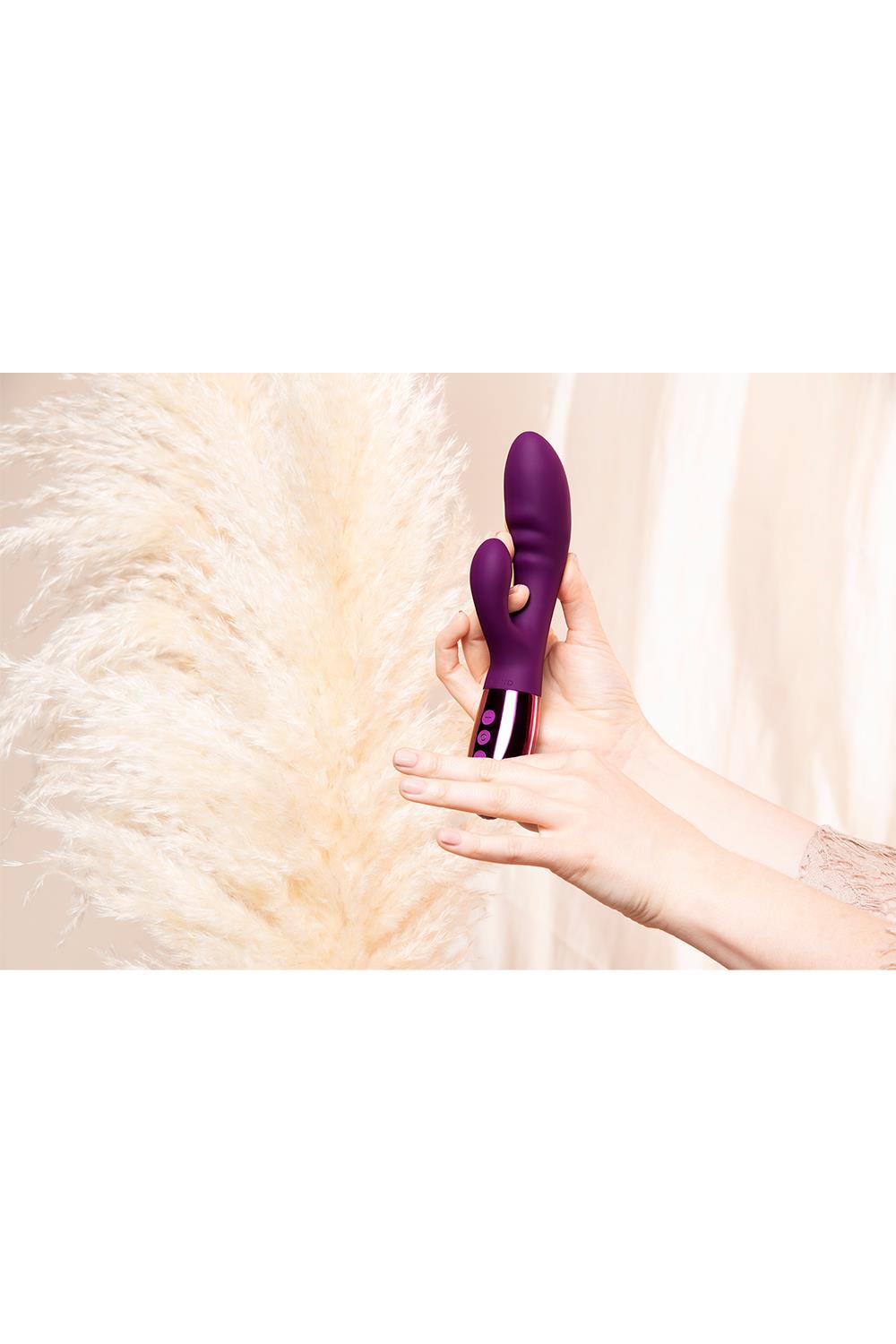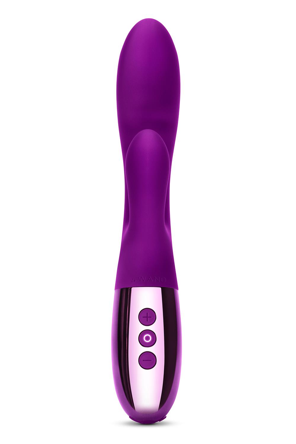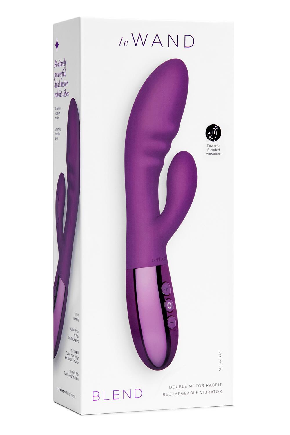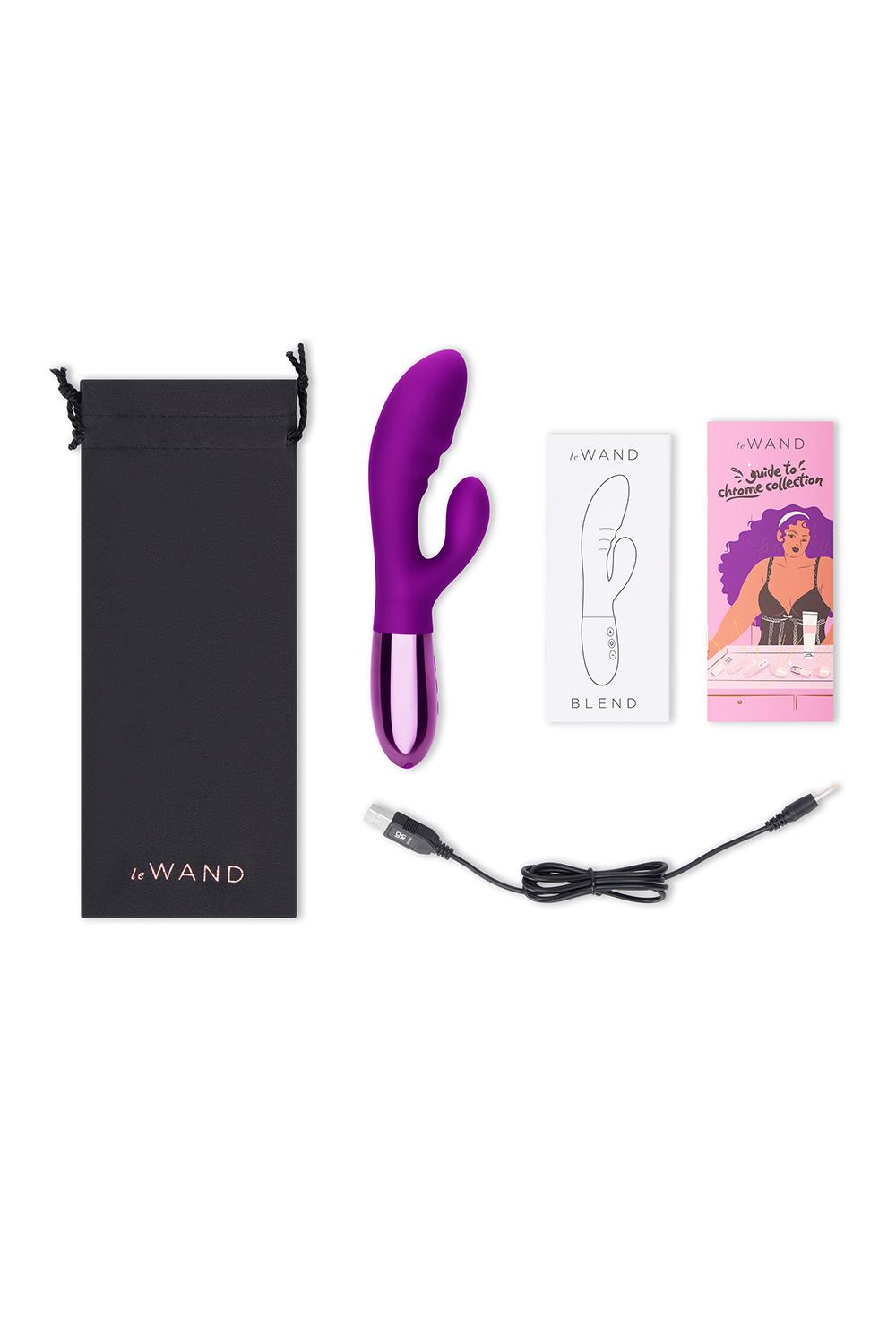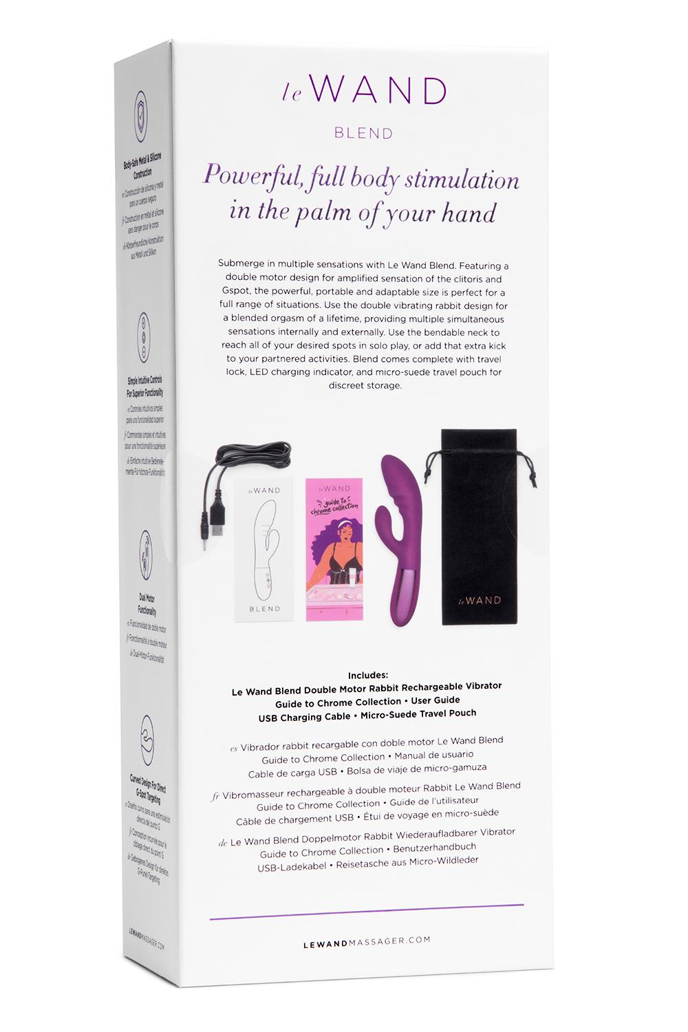 Le Wand Blend, double motor rabbit rechargeable vibrator. Submerge in multiple sensations with Le Wand Blend. Featuring a double motor design for amplified sensation of the clitoris and Gspot, the powerful, portable and adaptable size is perfect for a full range of situations. Use the double vibrating rabbit design for a blended orgasm of a lifetime, providing multiple simultaneous sensations internally and externally. Use the bendable neck to reach all of your desired spots in solo play, or add that extra kick to your partnered activities. Blend comes complete with travel lock, LED charging indicator, and micro-suede travel pouch for discreet storage.