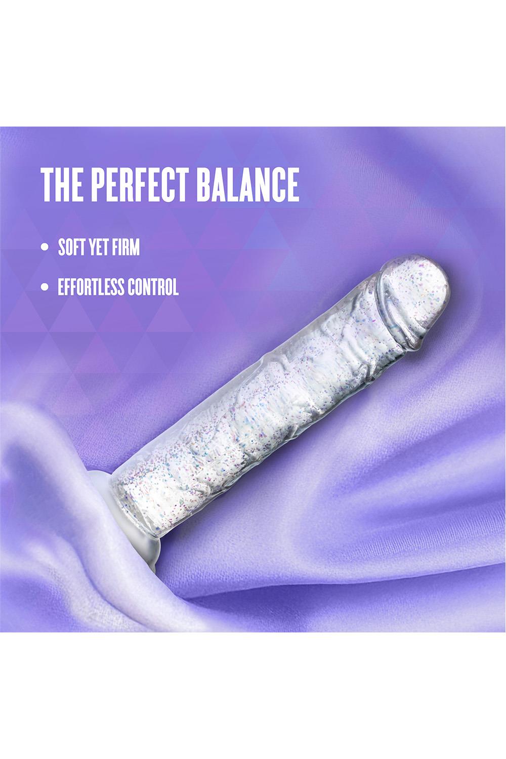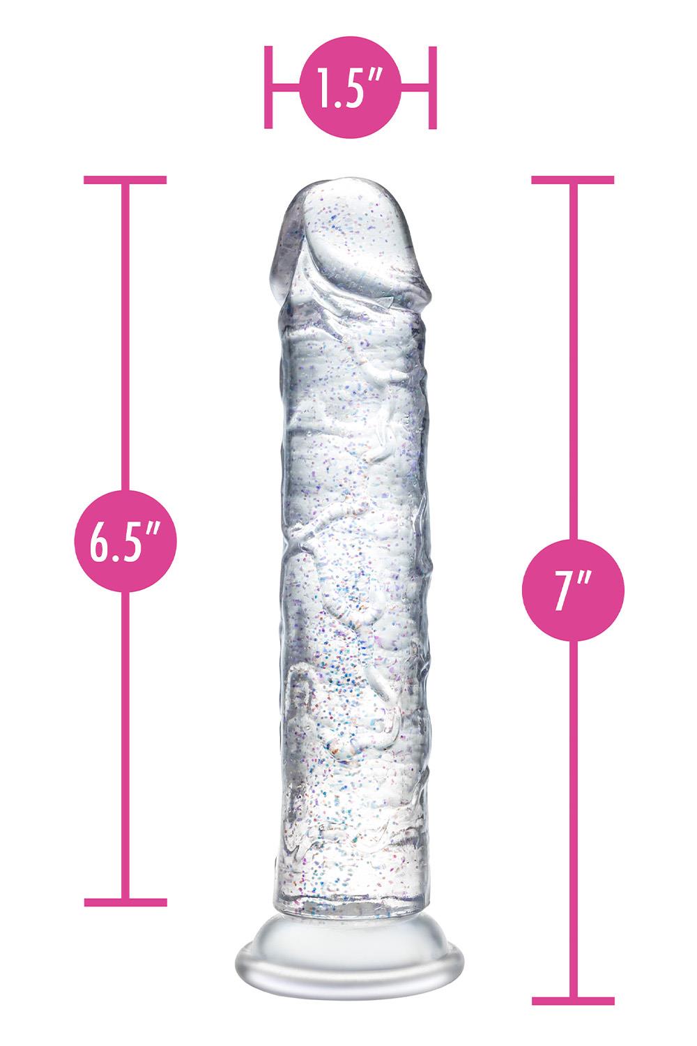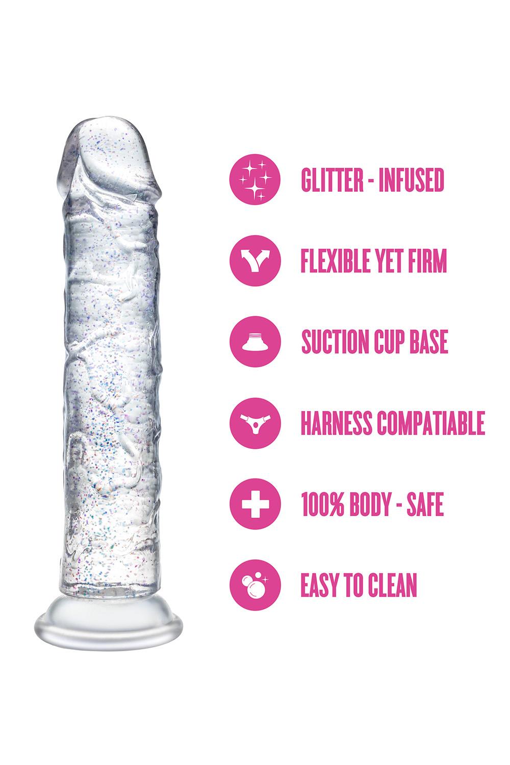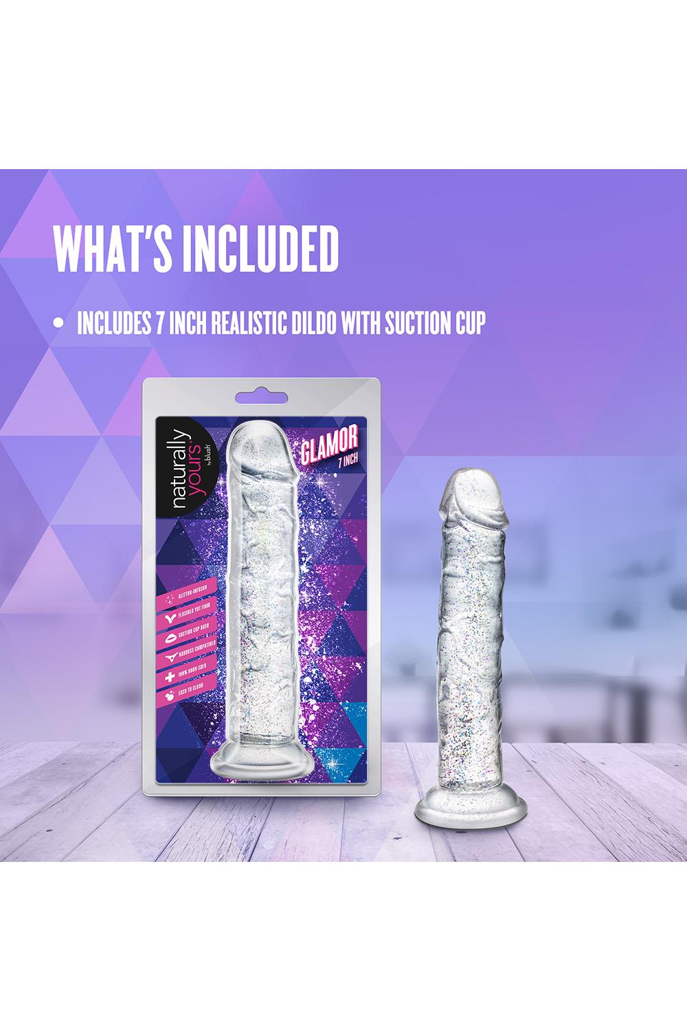 Step into the spotlight with Glamor, the glittering star of your pleasure collection. With its radiant color and subtle sparkle, Glamor adds a touch of glam to every intimate moment. Perfect for those who like their toys with a little extra flair. At 7 inches, it’s a versatile size that’s ideal for both solo exploration and partnered play. Designed to be flexible yet satisfyingly firm, Glamor adapts to your movements while offering a fulfilling experience. The strong suction cup base secures easily to smooth surfaces for hands-free fun and is fully harness compatible, giving you endless options for playful discovery. With its 100% body-safe design, Glamor is easy to clean and always ready for an encore. Whether you're indulging in a solo performance or sharing the stage with a partner, Glamor ensures every scene ends with a standing ovation.