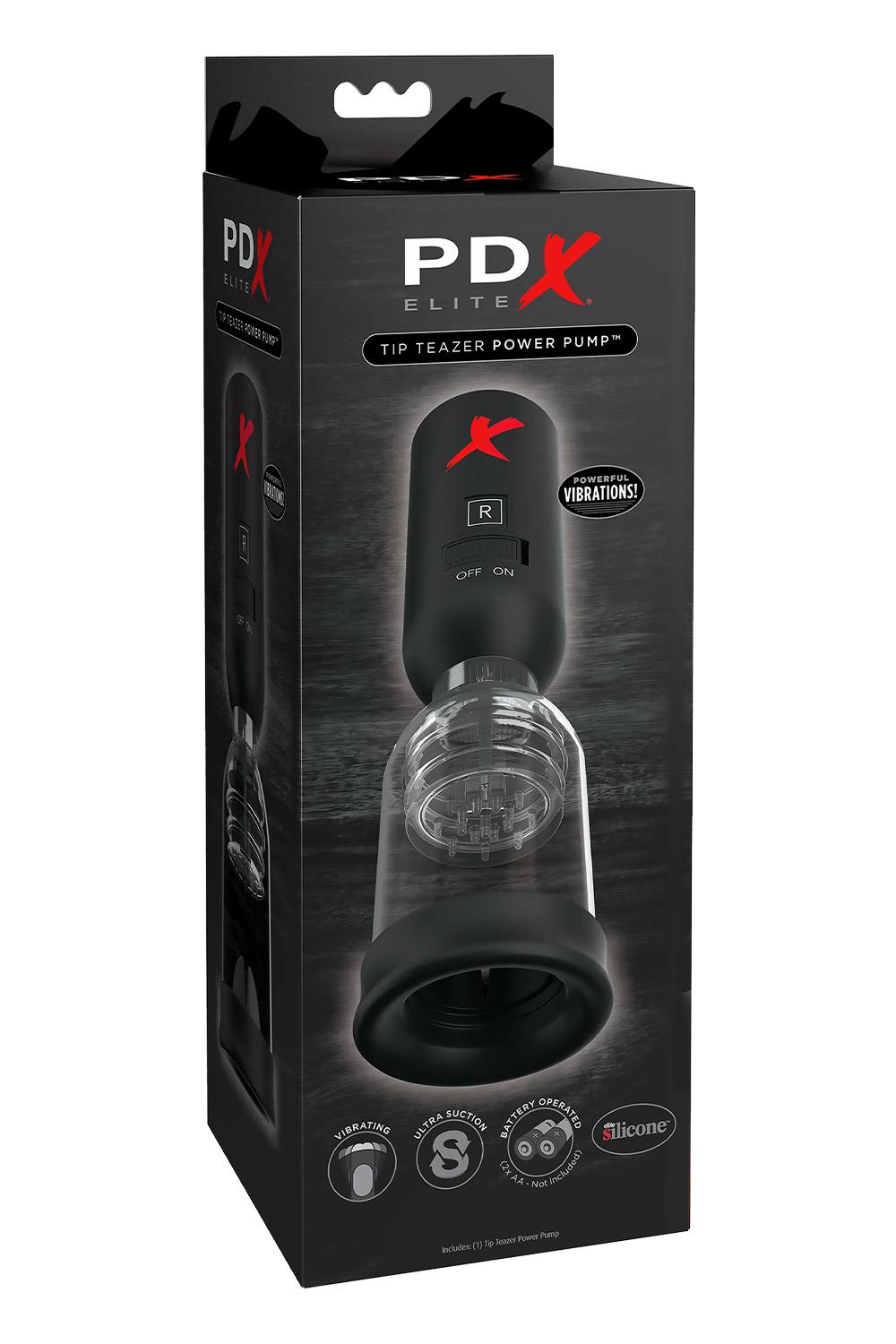 The PDX ELITE® Tip Teazer Power Pump provides concentrated pleasure with a soft, flexible internal vibration pad covered in teasing pleasure nubs, and a smooth, stretchy Elite Silicone™ donut that snugly surrounds your penis head. With an easy on-and-off switch, and a release button that can be pulsed for additional stimulation, you can experience a vacuum-tight seal and the best blowjob of your life!