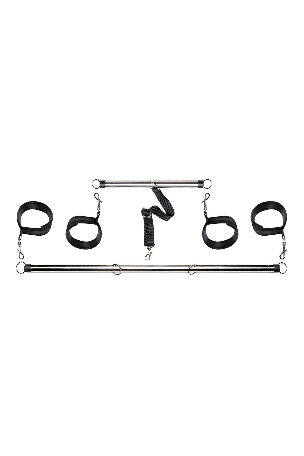 Welcome your lover with open arms and legs with this incredible Spread 'Em Bar & Cuff Set! This kinky set of metal spreader bars will put you or your partner in the right position for pleasure every time. Attach the adjustable wrist and ankle cuffs and your subject won't be able to close their thighs or wrists. Try new positions and scenarios you never dared, and do it all with ease, thanks to the swivel-mounted cuffs which allow for some movement. The connecting nylon support strap can also be removed, giving you unlimited possibilities and exciting new positions. They'll squirm around and squeal, but they won't get out! Comes with a handy carrying case, too! Open wide!