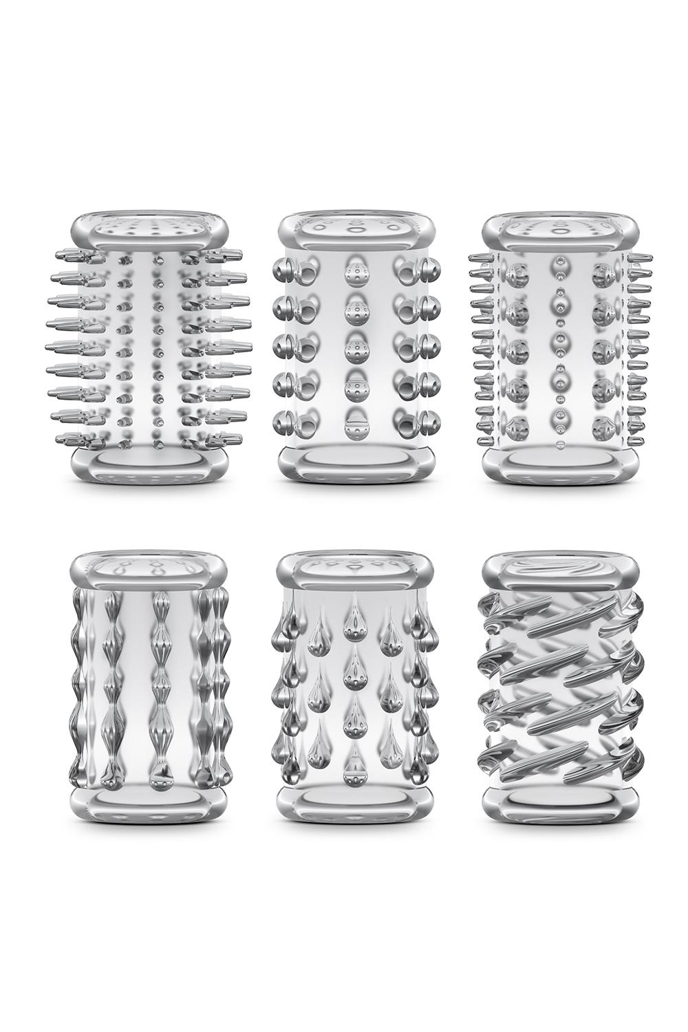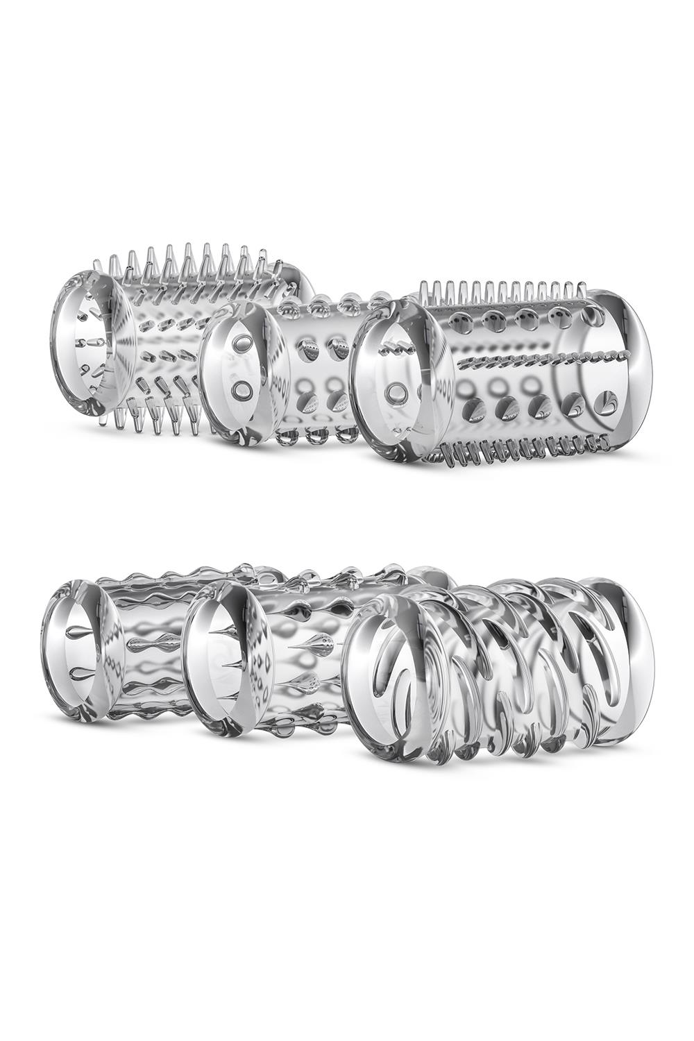 These stretchy enhancement sleeves are a simple way to add a new level of pleasure and sensation to your rod or favorite dildo. Just slide one of the sleeves over your shaft. Easy to use, and stays in place!