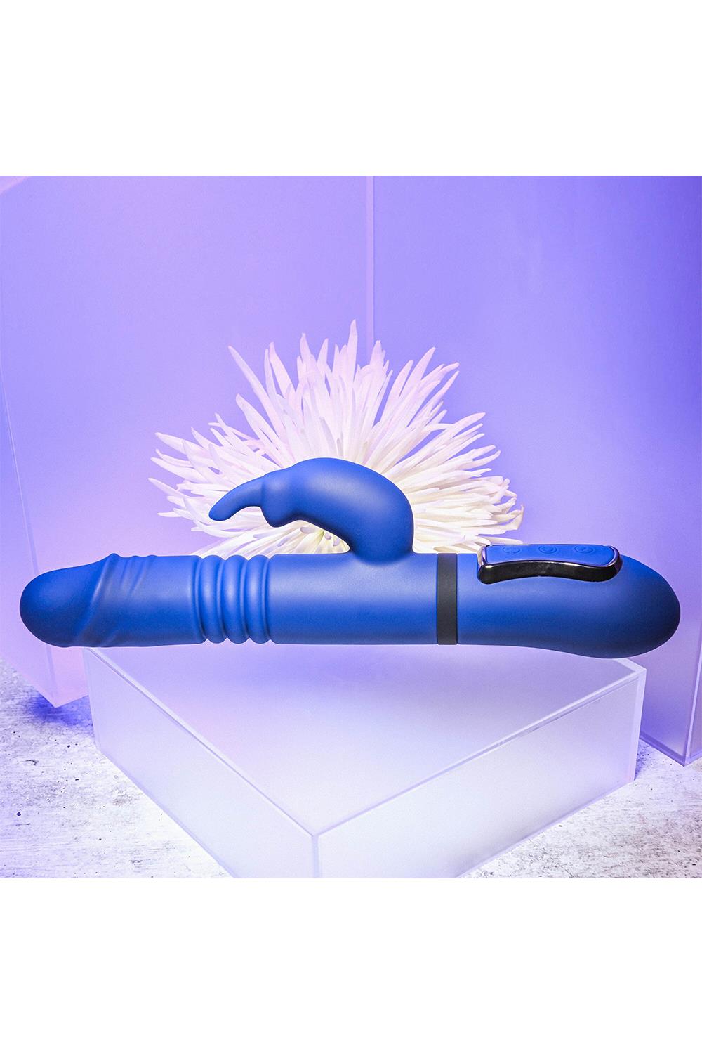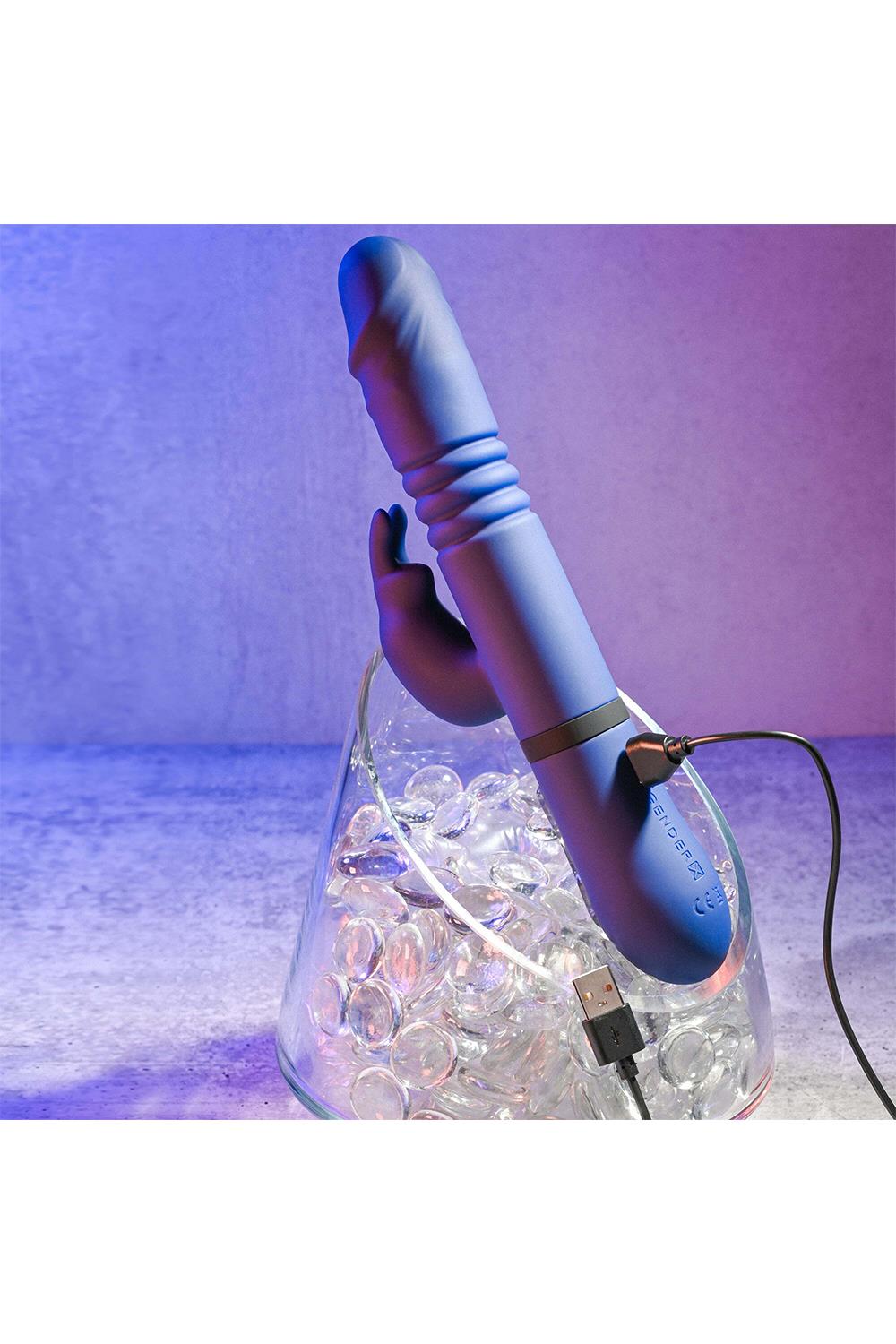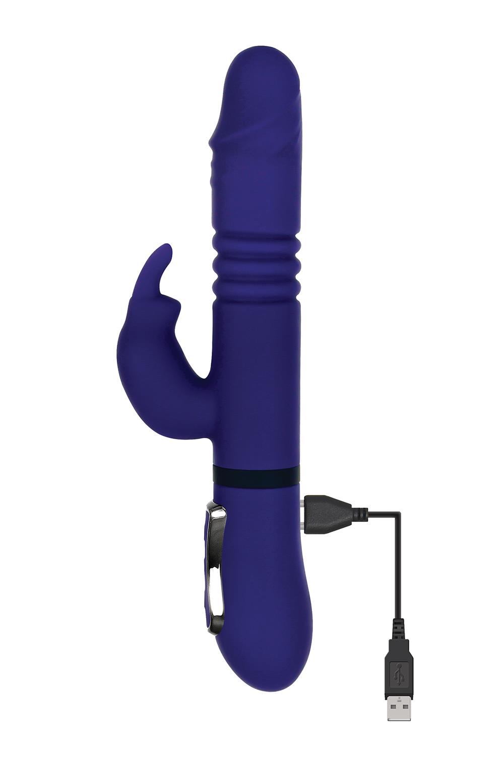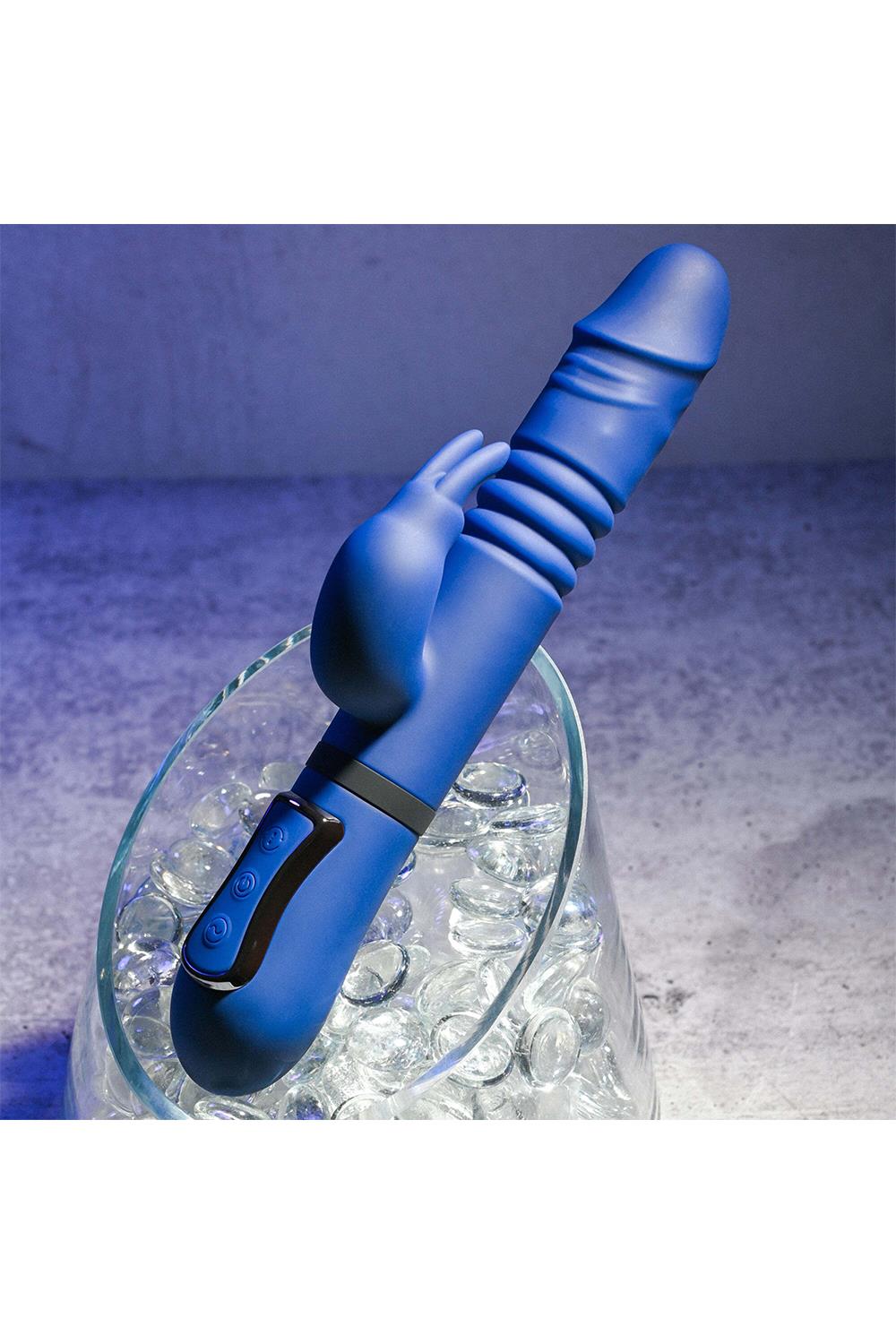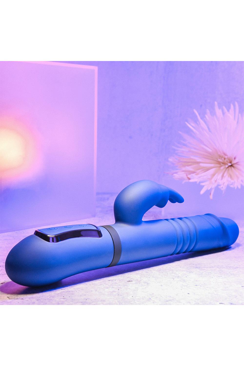 This tall, smooth rabbit vibe is ready to thrust all night! With a supple, textured tip and an accordion center that stretches in and out, you’ll be amazed at the look and feel of the powerful thrust function. But this large fully submersible shape has a few more secrets up its sleeve – a powerful rabbit shaft whose bunny ears just won’t quit, and rotating beads in the shaft that churn and spin with an erotic rhythm perfect for any massage! Between the thrusting, rotating and powerful vibrations, you’ll be headed for a mind-melting experience in no time, especially with the ergonomic controls that let you customize as you go. Fully rechargeable and easy to clean!