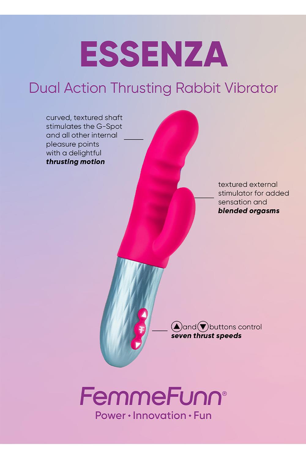 The curved shape of Essenza allows you to direct the thrusts at your G-spot. Ready to step up the sensation? Power on the rabbit and feel the vibrations inside and out. Used solo or with a partner, this toy is sure to please.