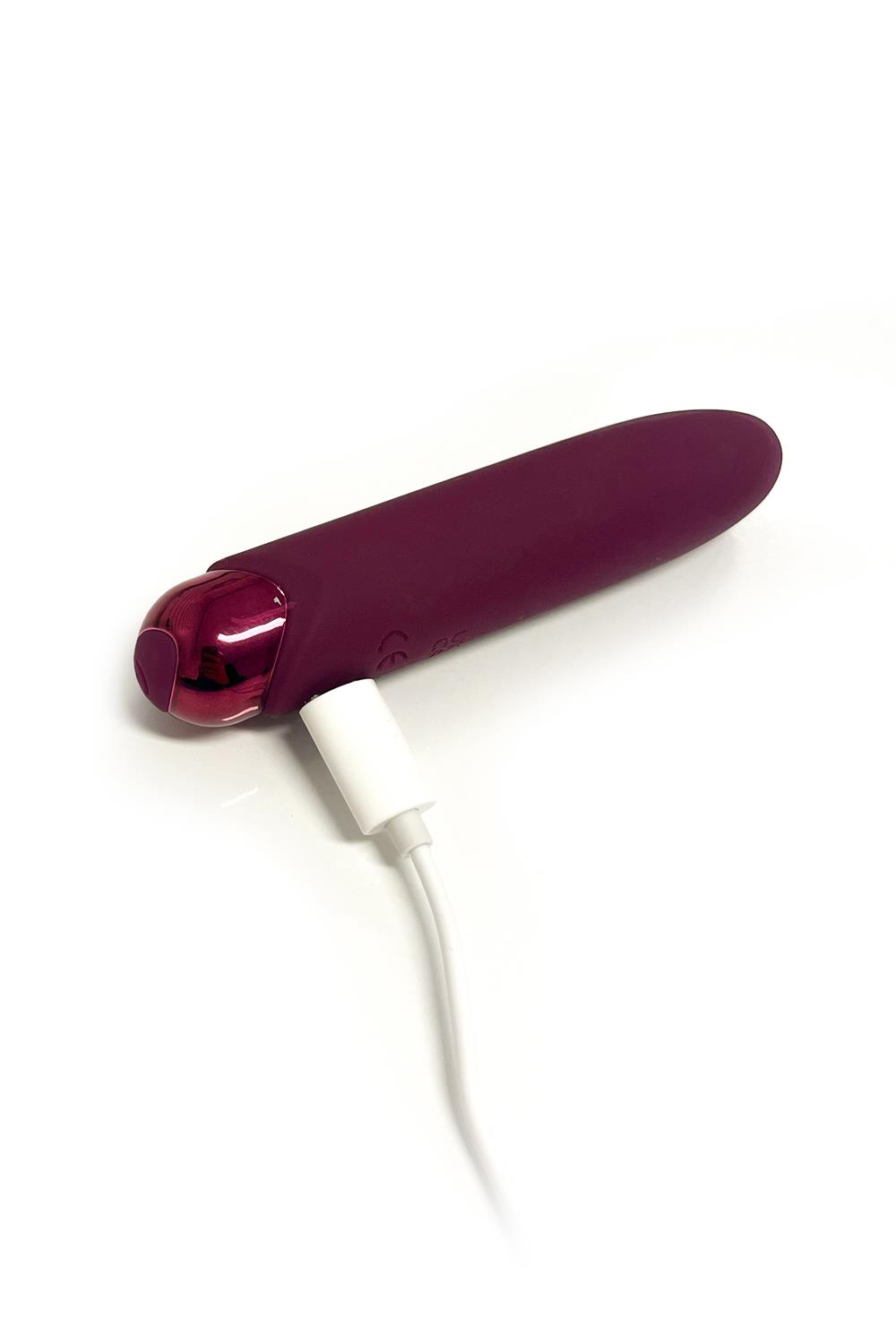 The Glam bullet is made of the finest, velvety silicone material. As your fingertip pushes the button at the bottom, the smooth vibe will transport you to a world of decadence and bliss. Adorned with a shiny accent at the base, the Glam bullet vibrator not only embodies elegance but also practical advantages: it's IPX6 Shower friendly and rechargeable with the included magnetic USB cable.