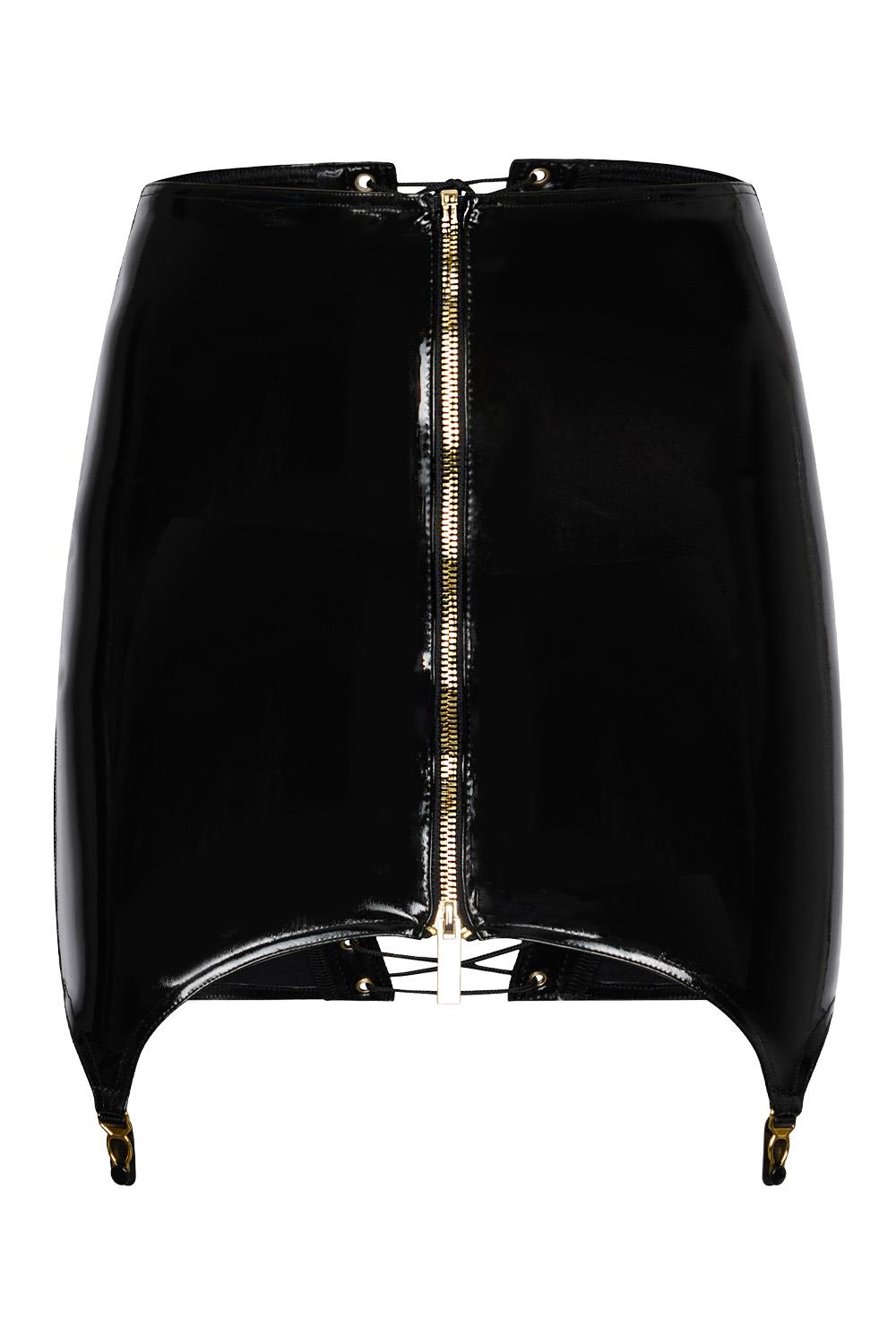 Add high-impact elegance to your collection with the Shadow Shine Skirt — a statement piece designed to captivate from every angle. Crafted from premium Datex, this high-waisted skirt sculpts and smooths the silhouette while combining luxury, edge, and erotic intrigue.