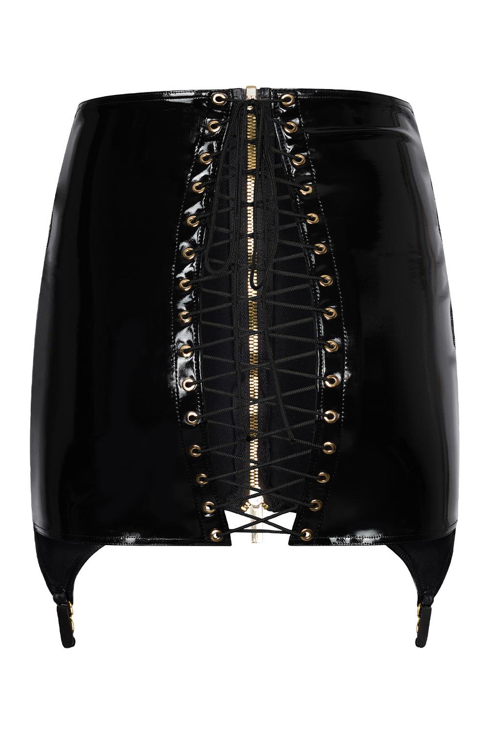 A gold-toned front zipper provides both style and seduction, offering a teasing reveal, while the lace-up back detail adds sensual drama and customizable fit. With a soft inner fabric for comfort and a figure-hugging shape, this skirt is perfect for customers who demand fashion that moves with them — and never goes unnoticed.