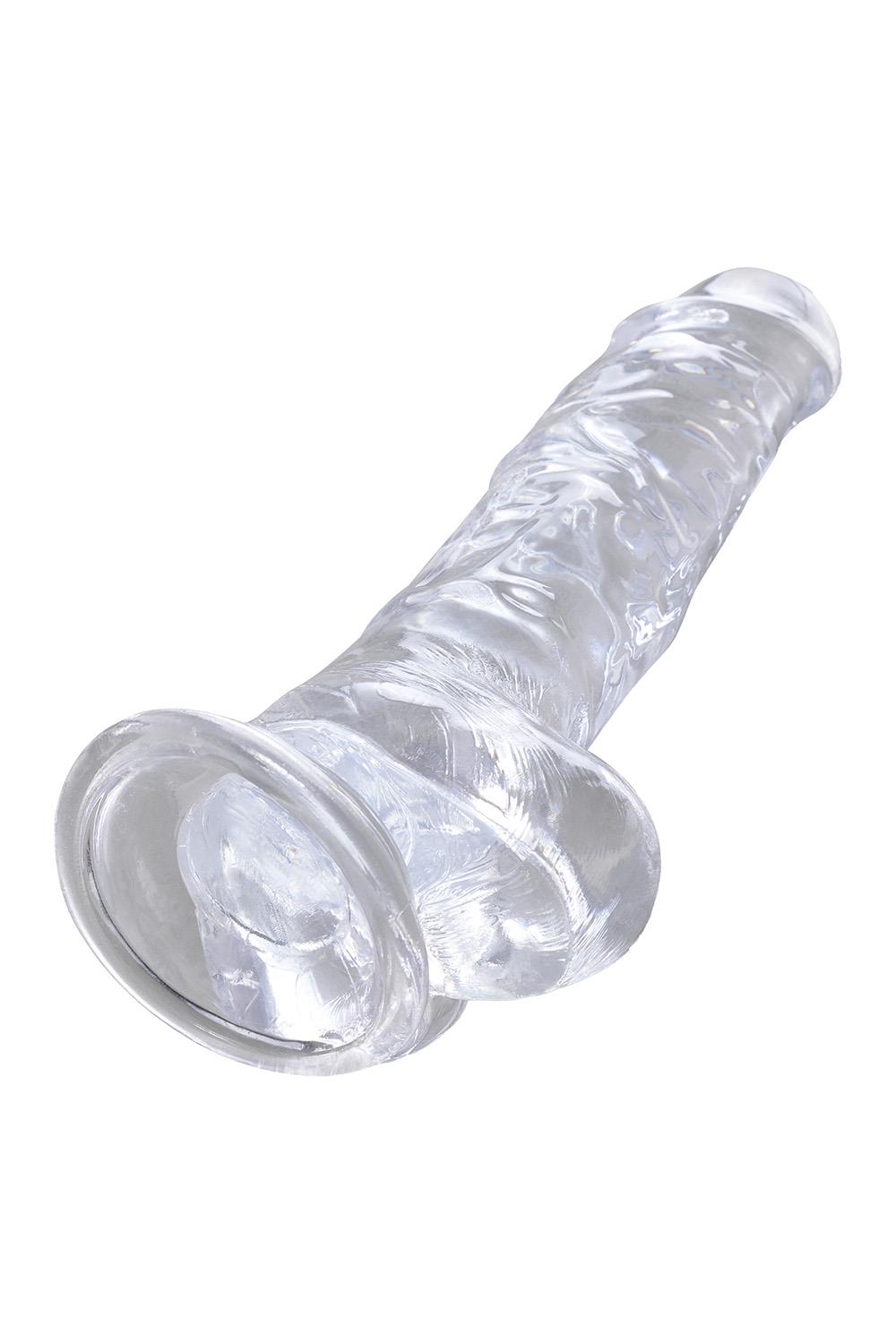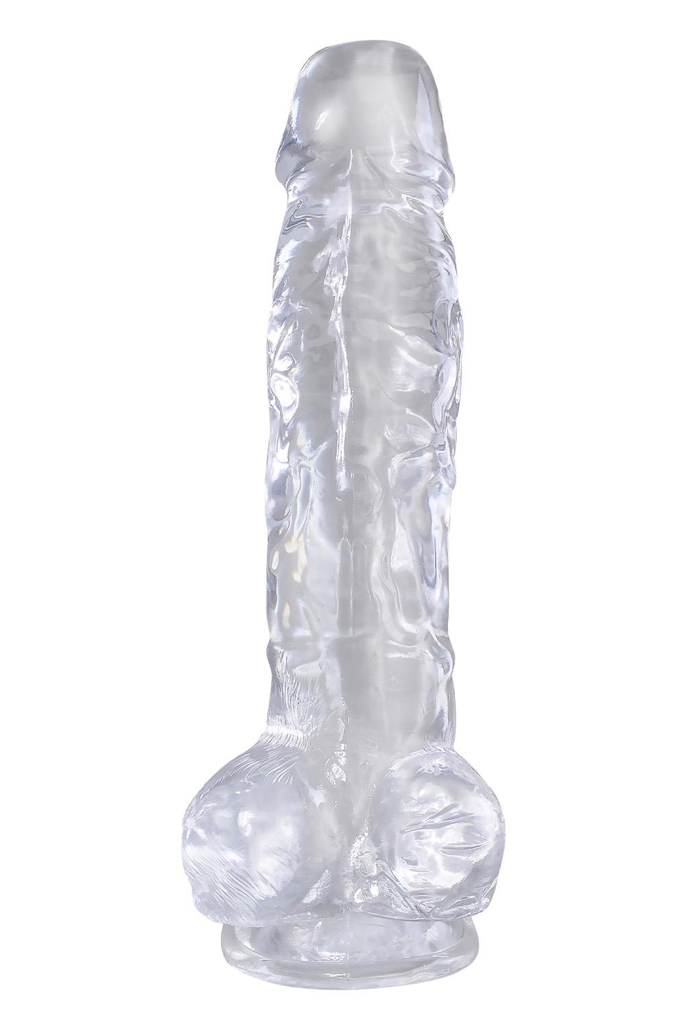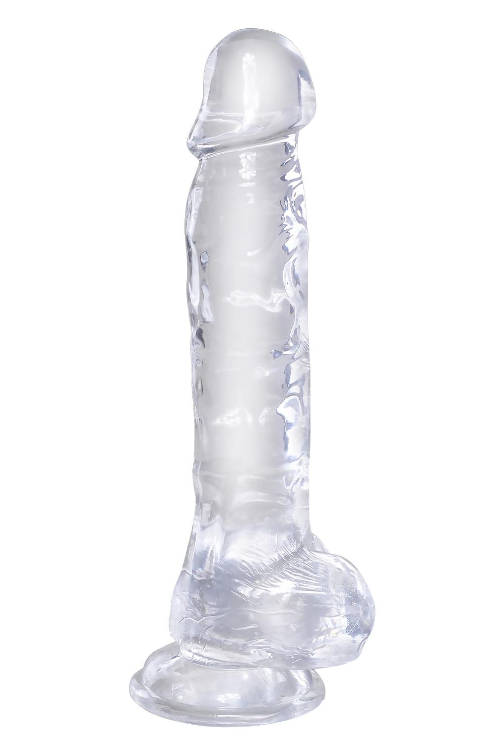 The King Cock® Clear 8 in. Dildo combines a translucent dildo with a realistic cock design: flexible shaft, detailed veins, and defined head. The powerful suction cup base sticks to nearly any flat surface and makes every dildo harness compatible.