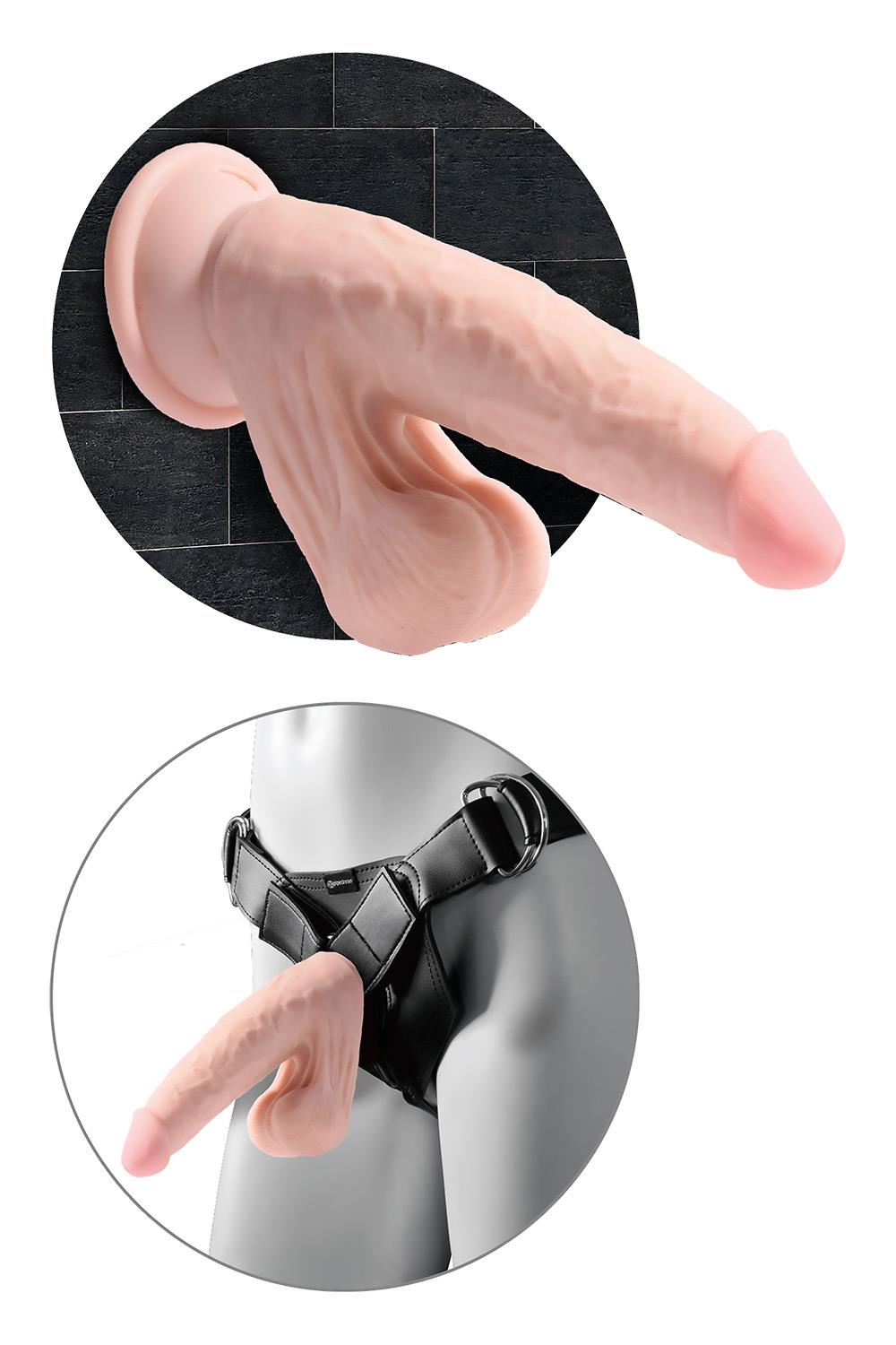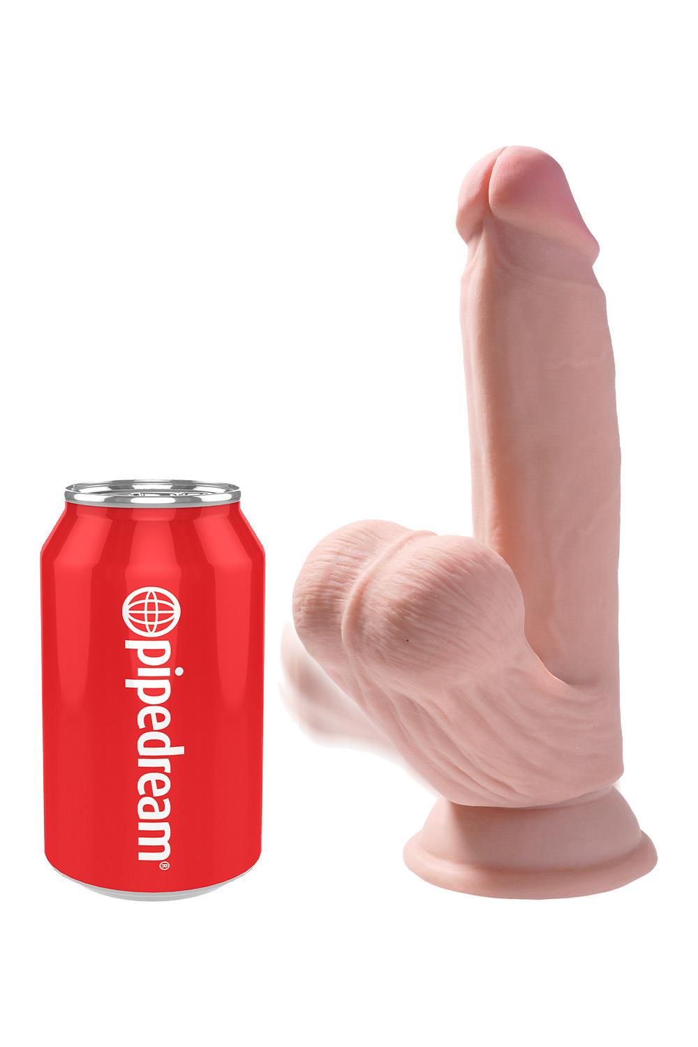 The 7"" King Cock® Plus Triple Density Cock with Swinging Balls is made of new and improved Fanta Flesh® material, making it stiff on the inside and soft on the outside.What makes the Swinging Balls truly special is the carefully crafted construction of the stretchy sack and the incredible feel of the firm internal testicles! With every thrust, the balls come swing and slap against the body for added stimulation!